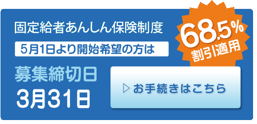 ※ご加入申込後、保険始期日(開始日)までに、ご退職された場合など、職種が「固定給者」でなくなった場合は、ご契約をお取消しさせていただきますのでご了承ください。